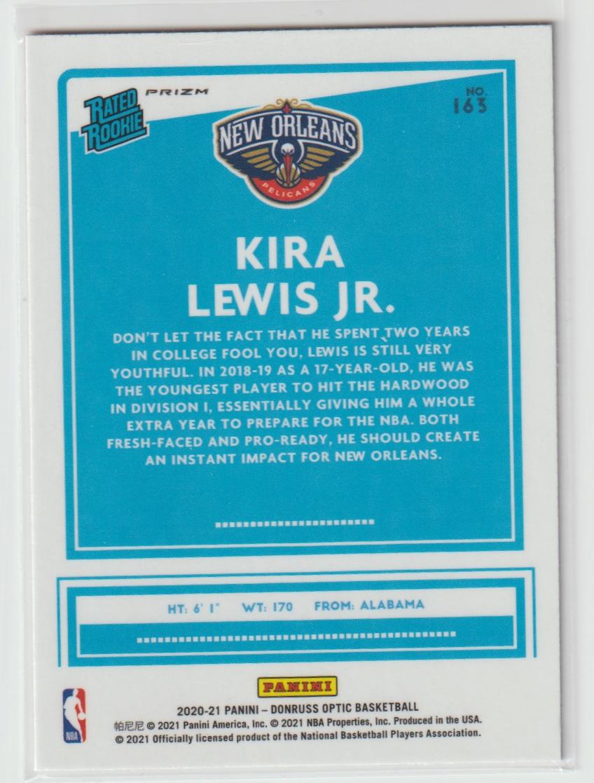 163 Kira Lewis Jr. - New Orleans Pelicans Hyper Pink 2020/21 Donruss Optic Basketball