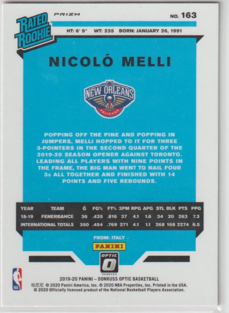 163 Nicolo Melli - New Orleans Pelicans Hyper Pink Prizm 2019/20 Donruss Optic Basketball