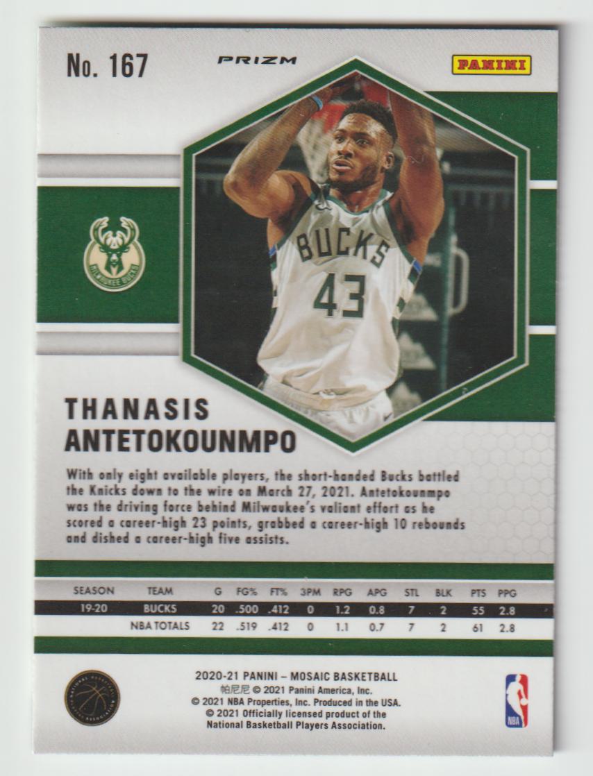 167 Thanasis Antetokounmpo - Milwaukee Bucks Green 2020/21 Mosaic Basketball