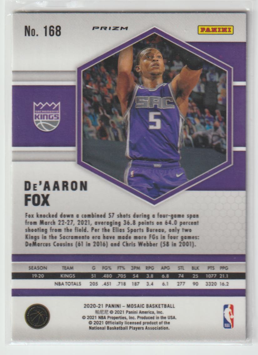 168 De'Aaron Fox - Sacramento Kings Reactive Blue 2020/21 Mosaic Basketball