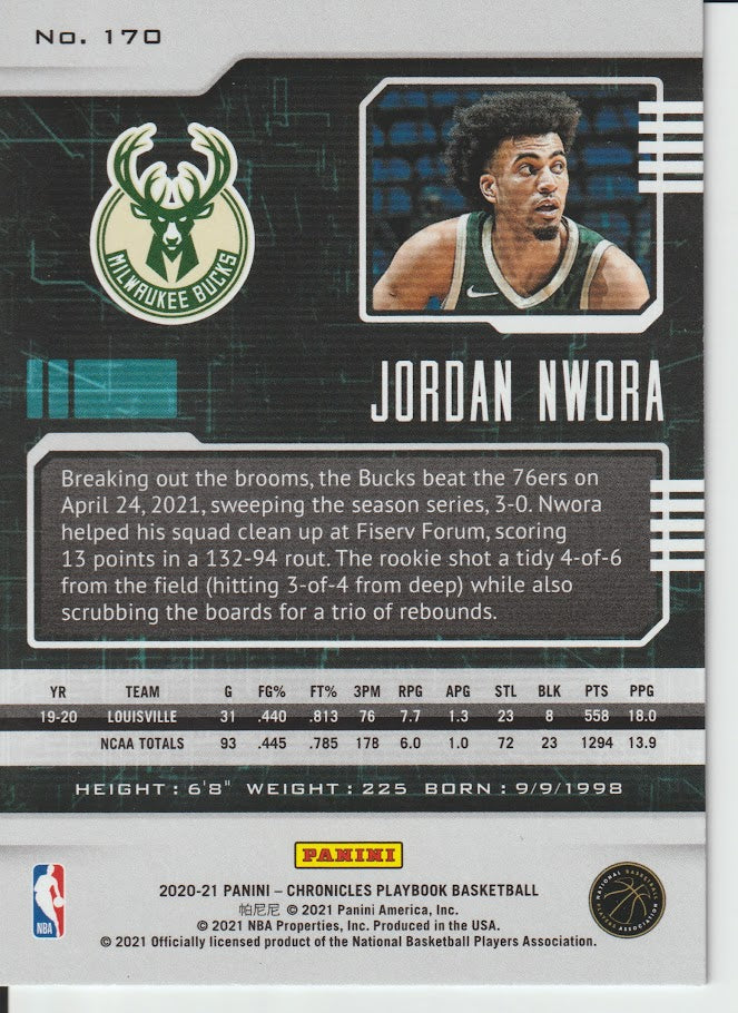 170 Jordan Nwora - Milwaukee Bucks 20/21 Chronicles Basketball