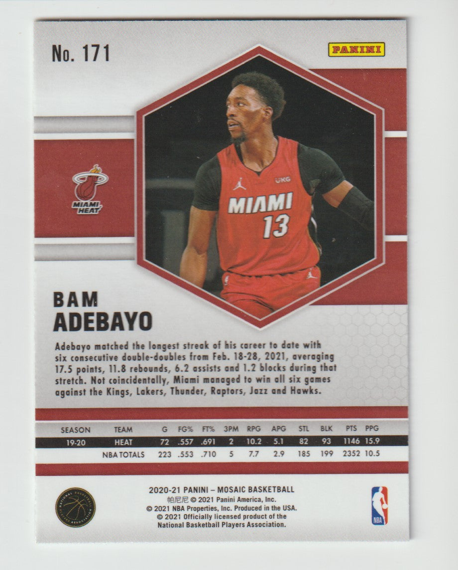 171 Bam Adebayo - Miami Heat 2020/21 Mosaic Basketball