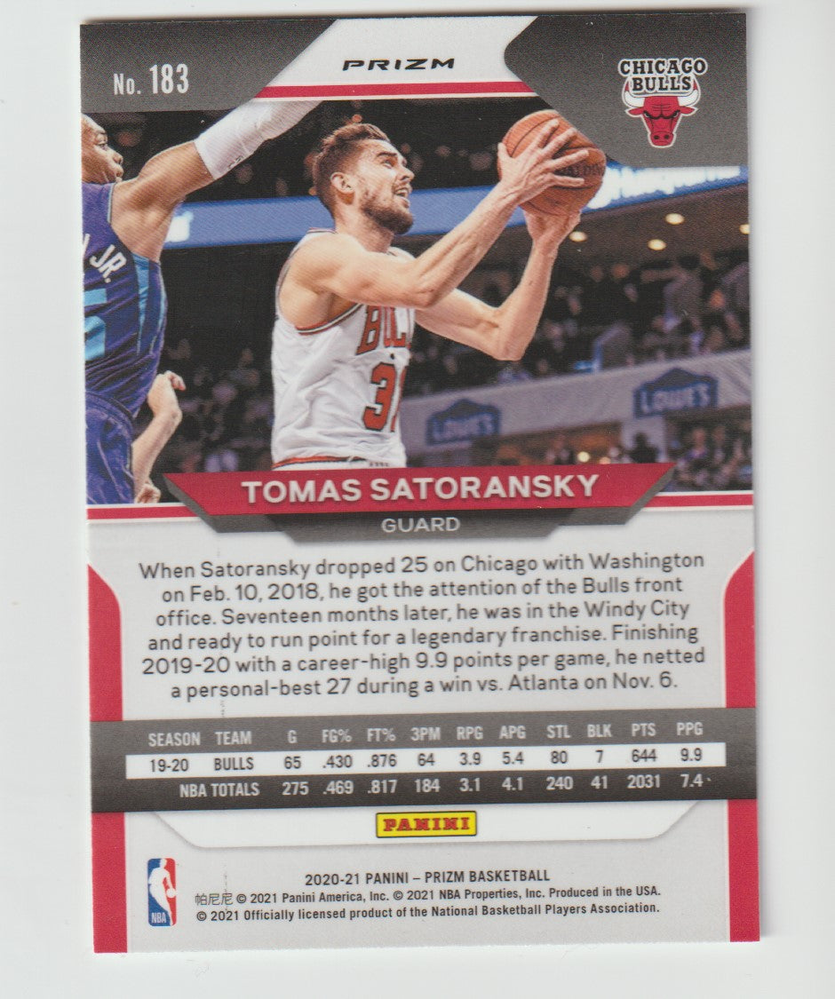 183 Tomas Satoransky - Chicago Bulls Silver Prizm 2020/21 Prizm Basketball