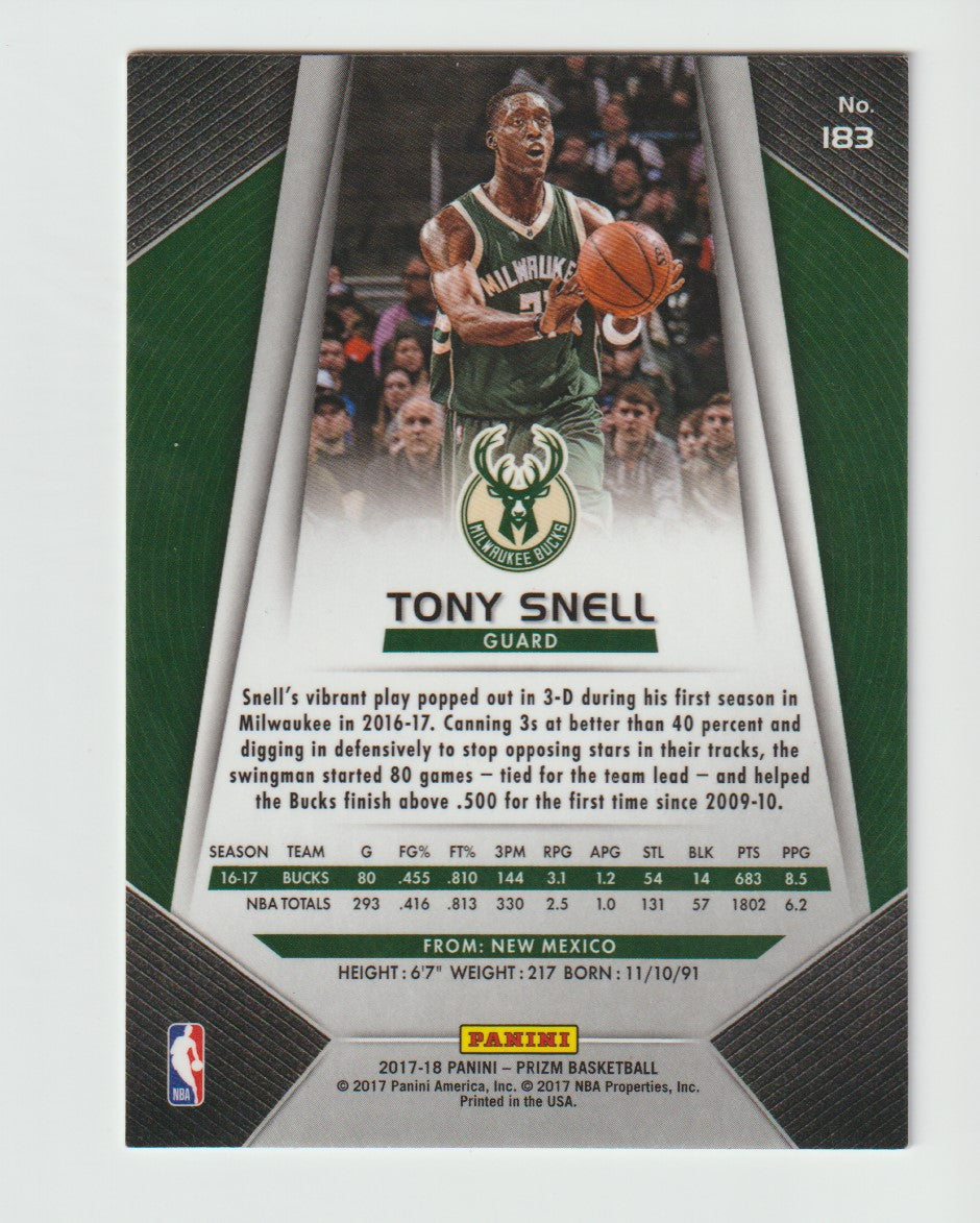 183 Tony Snell - Milwaukee Bucks 2017/18 Prizm Basketball