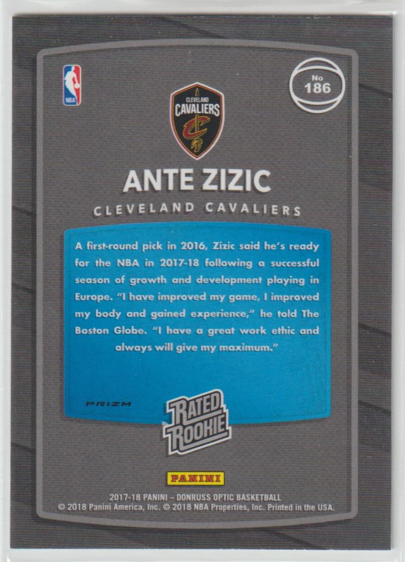 186 Ante Zizic - Cleveland Cavaliers Fast Break 2017/18 Donruss Optic Basketball
