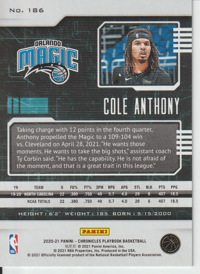 186 Cole Anthony - Orlando Magic 20/21 Chronicles Basketball