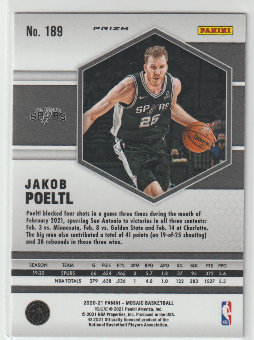 189 Jakob Poeltl - San Antonio Spurs Red Wave 2020/21 Mosaic Basketball