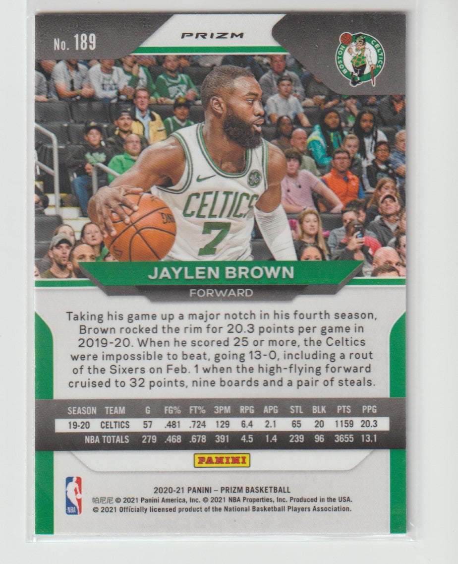 189 Jaylen Brown - Boston Celtics Blue Wave Prizm 2020/21 Prizm Basketball