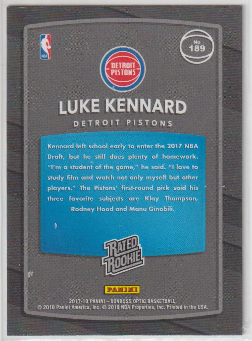 189 Luke Kennard - Detroit Pistons Mega Box Red/Yellow 2017/18 Donruss Optic Basketball
