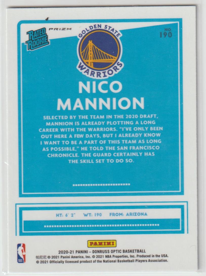 190 Nico Mannion - Golden State Warriors Holo 2020/21 Donruss Optic Basketball