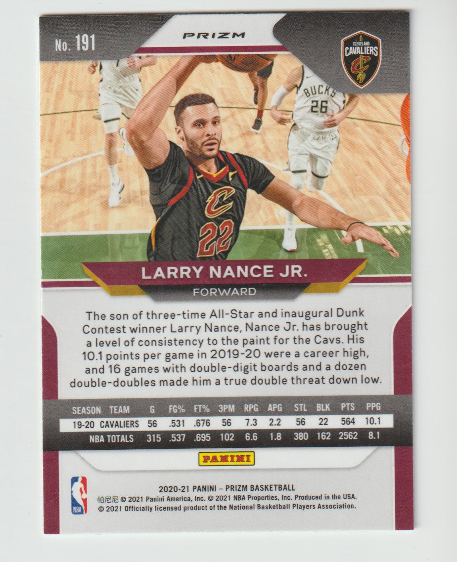 191 Larry Nance Jr. - Cleveland Cavaliers Green Prizm 2020/21 Prizm Basketball