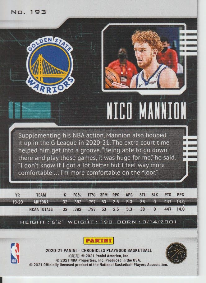 193 Nico Mannion - Golden State Warriors 20/21 Chronicles Basketball