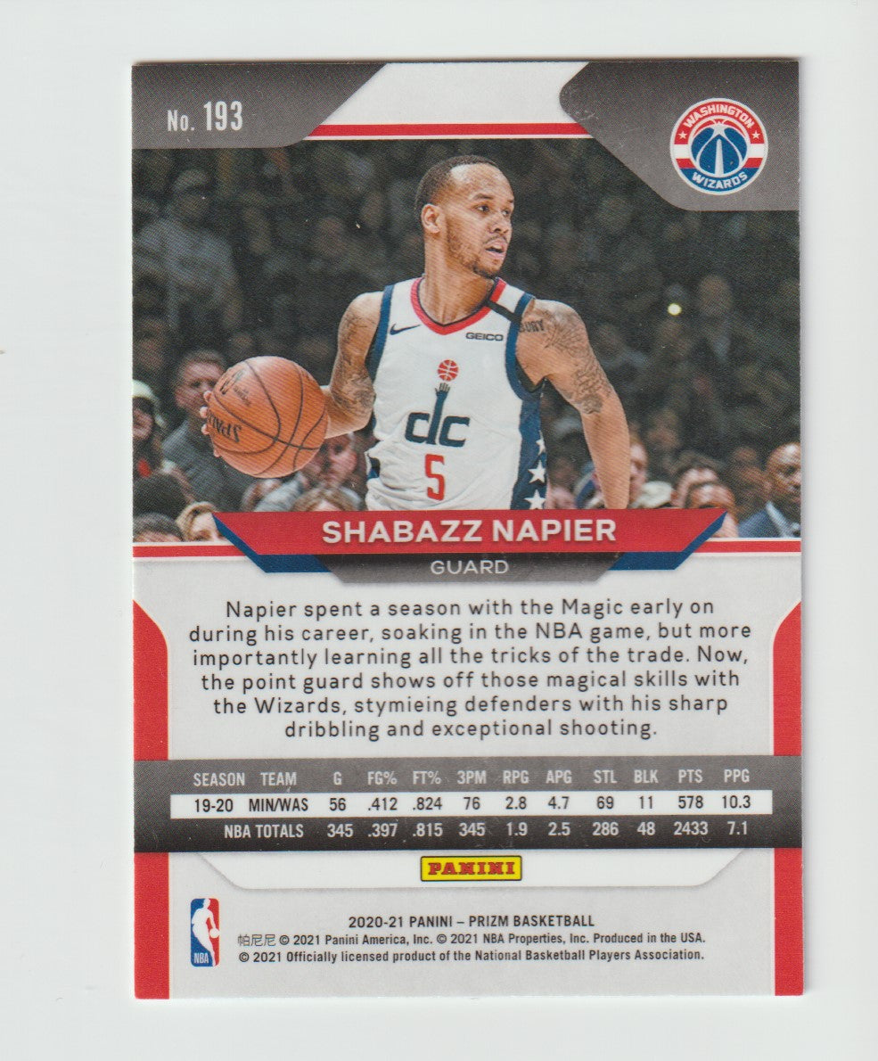 193 Shabazz Napier - Washington Wizards 2020/21 Prizm Basketball