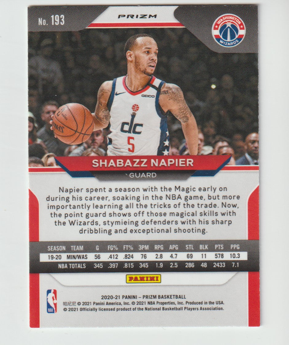 193 Shabazz Napier - Washington Wizards Silver Prizm 2020/21 Prizm Basketball
