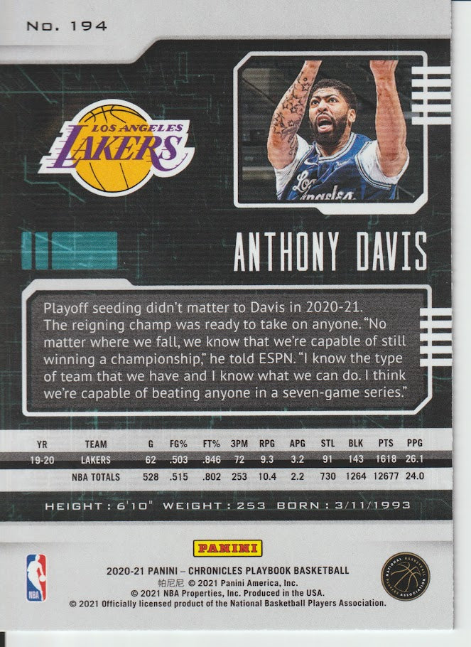 194 Anthony Davis - Los Angeles Lakers 20/21 Chronicles Basketball