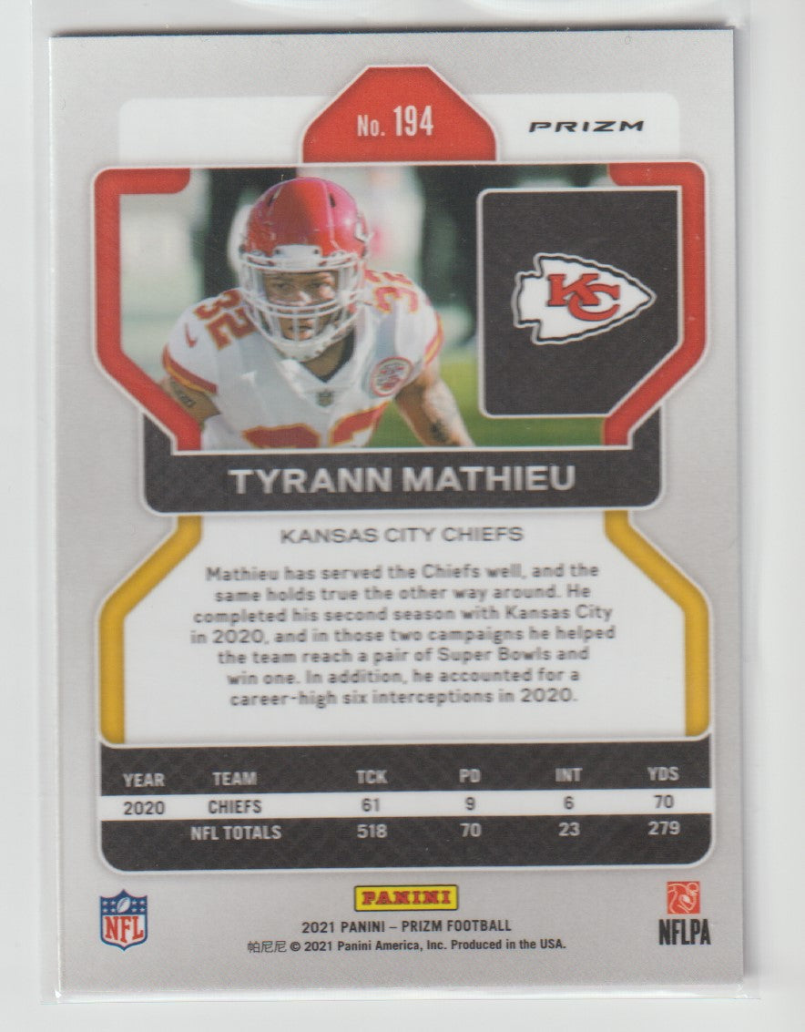 194 Tyrann Mathieu - Kansas City Chiefs Red White Blue 2021 Prizm Football