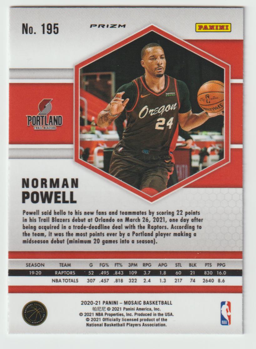 195 Norman Powell - Portland Trail Blazers Red Wave 2020/21 Mosaic Basketball