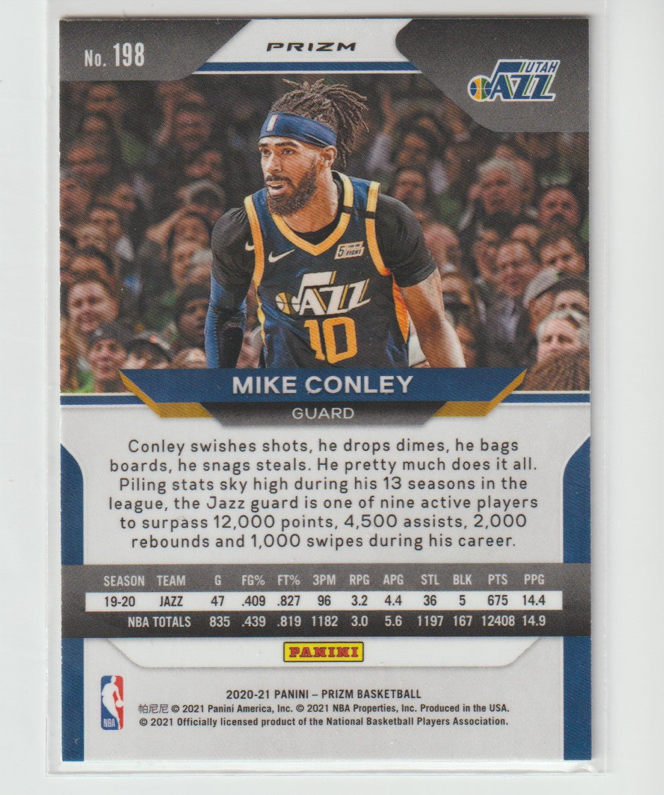 198 Mike Conley - Utah Jazz Silver Prizm 2020/21 Prizm Basketball