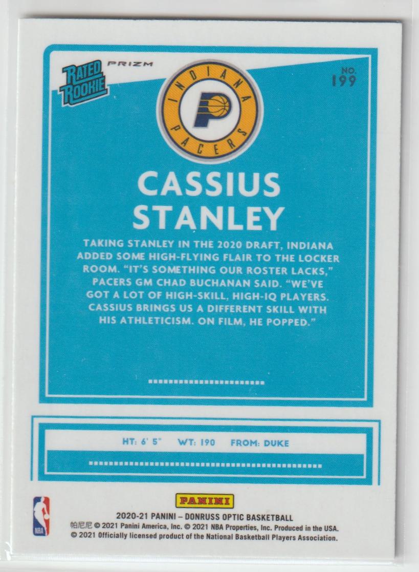 199 Cassius Stanley - Indiana Pacers Holo 2020/21 Donruss Optic Basketball