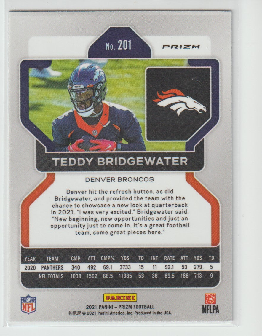 201 Teddy Bridgewater - Denver Broncos Red White Blue 2021 Prizm Football