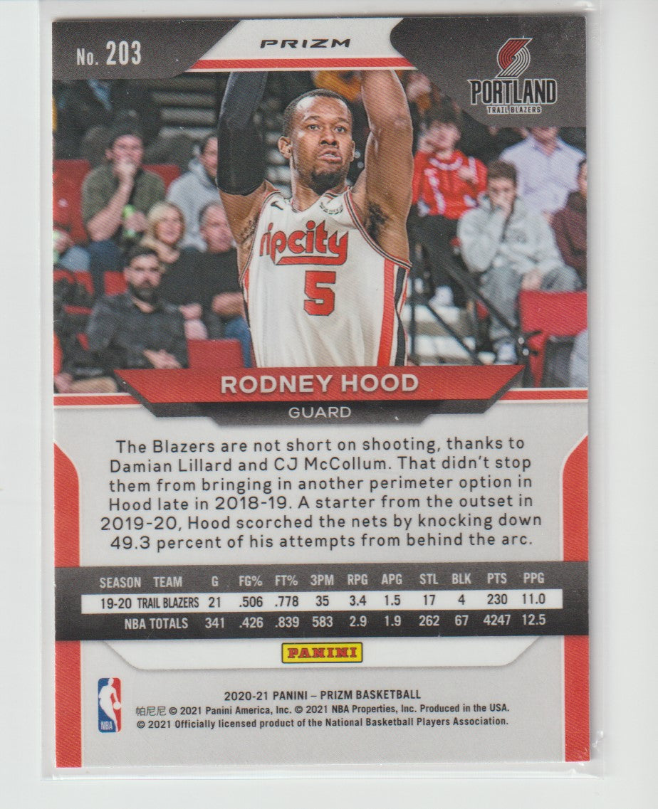 203 Rodney Hood - Portland Trail Blazers Red Ice Prizm 2020/21 Prizm Basketball