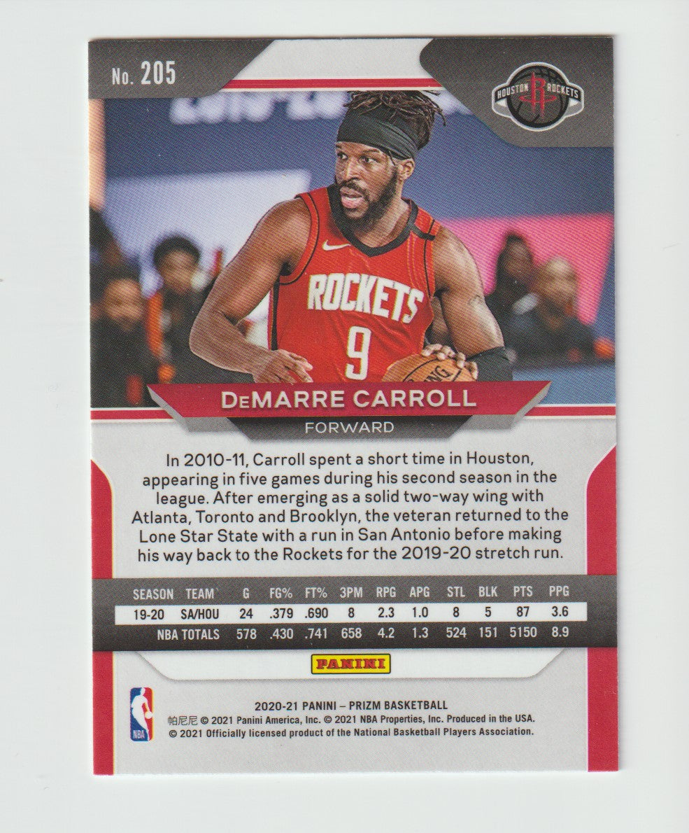 205 DeMarre Carroll - Houston Rockets 2020/21 Prizm Basketball