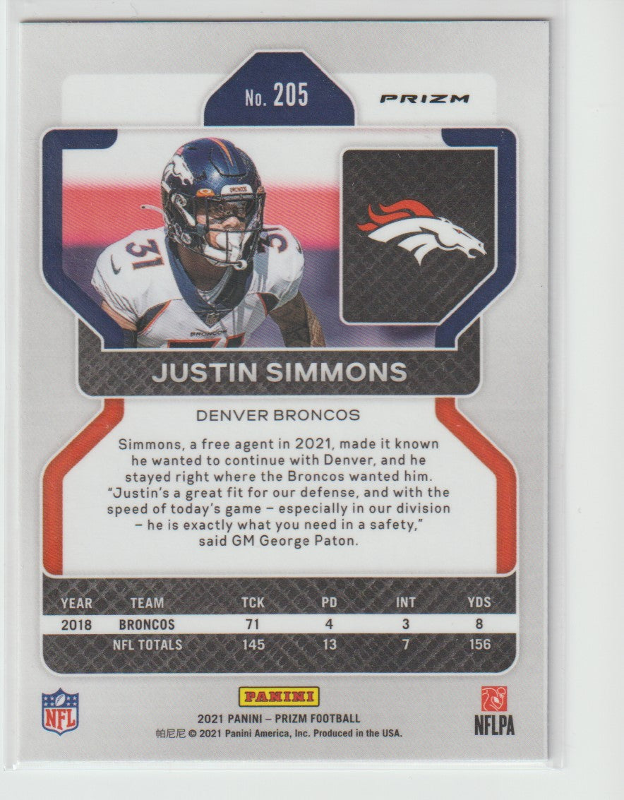 205 Justin Simmons - Denver Broncos Red White Blue 2021 Prizm Football