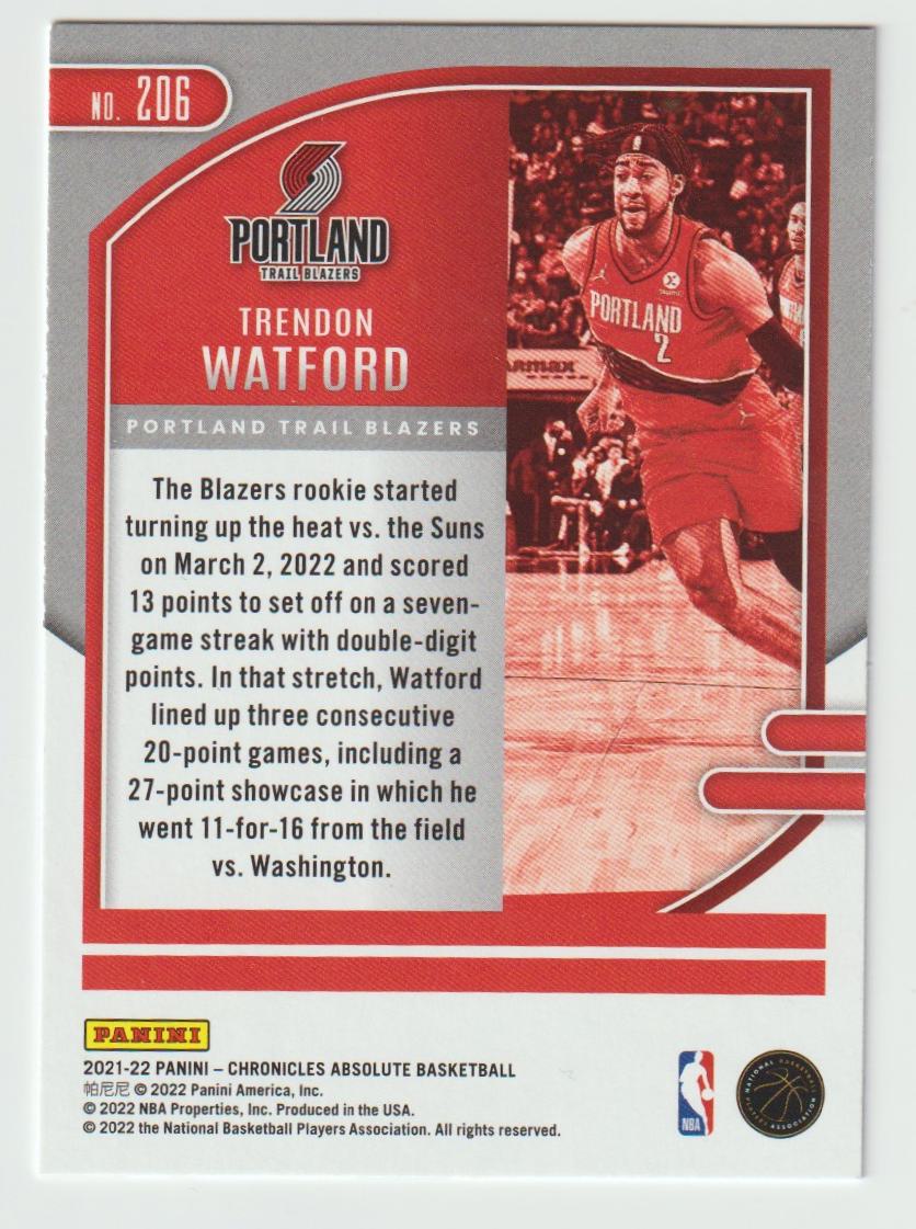 206 Trendon Watford - Portland Trail Blazers Green 2021/22 Chronicles Basketball