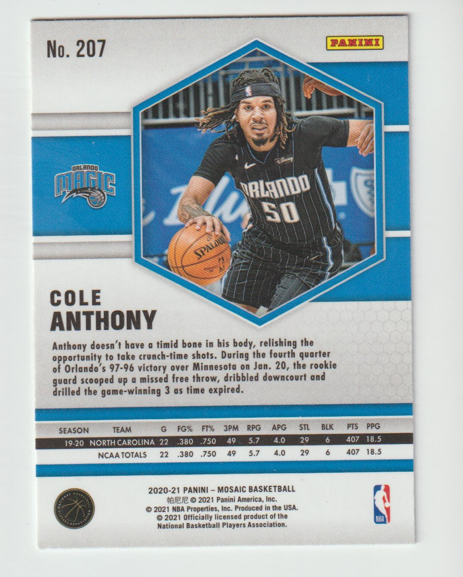207 Cole Anthony - Orlando Magic 2020/21 Mosaic Basketball