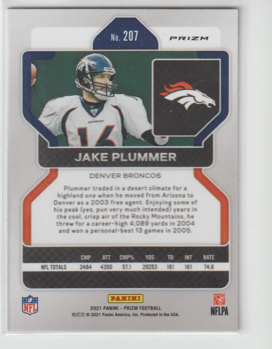 207 Jake Plummer - Denver Broncos Red White Blue 2021 Prizm Football