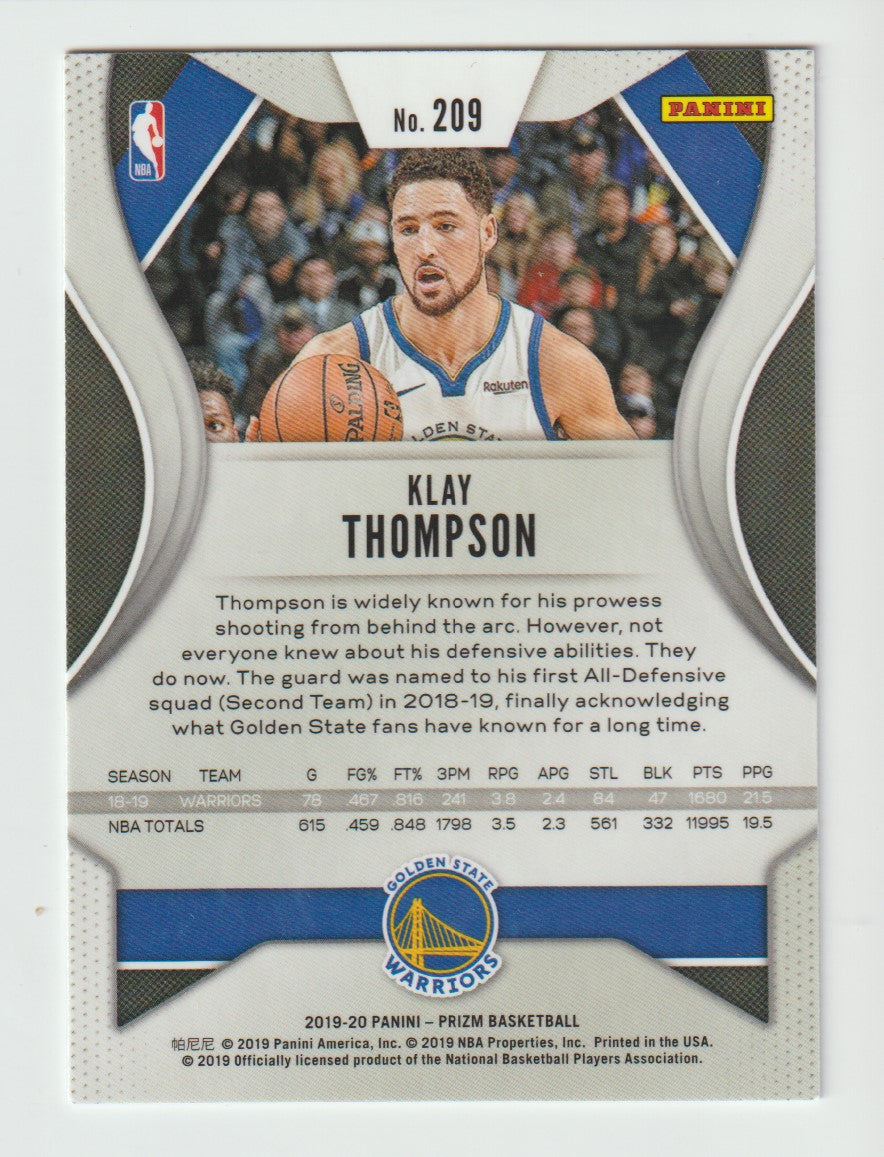 209 Klay Thompson - Golden State Warriors 2019/20 Prizm Basketball