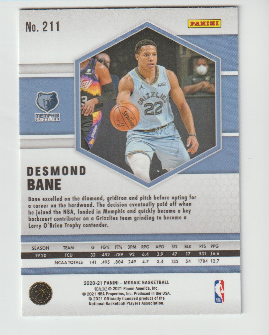211 Desmond Bane - Memphis Grizzlies 2020/21 Mosaic Basketball