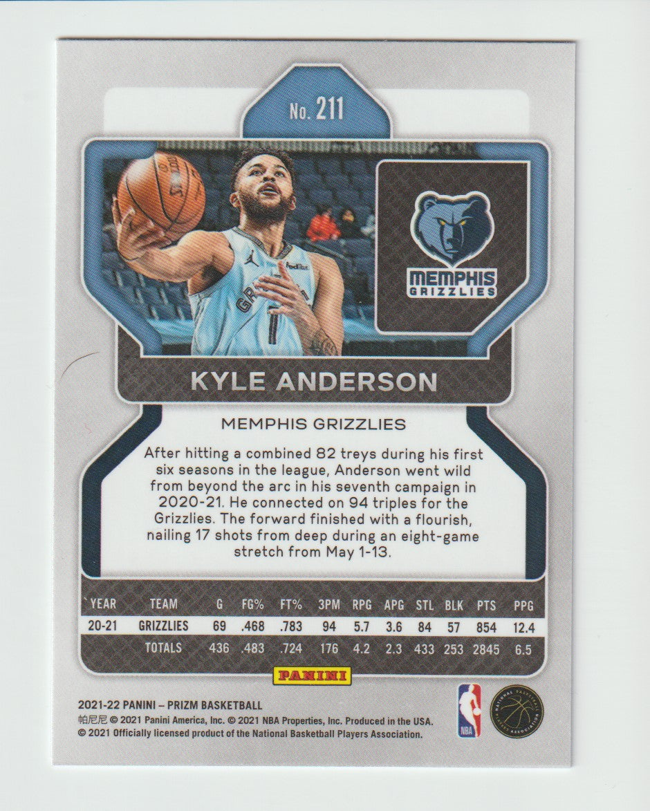 211 Kyle Anderson - Memphis Grizzlies 2021/22 Prizm Basketball