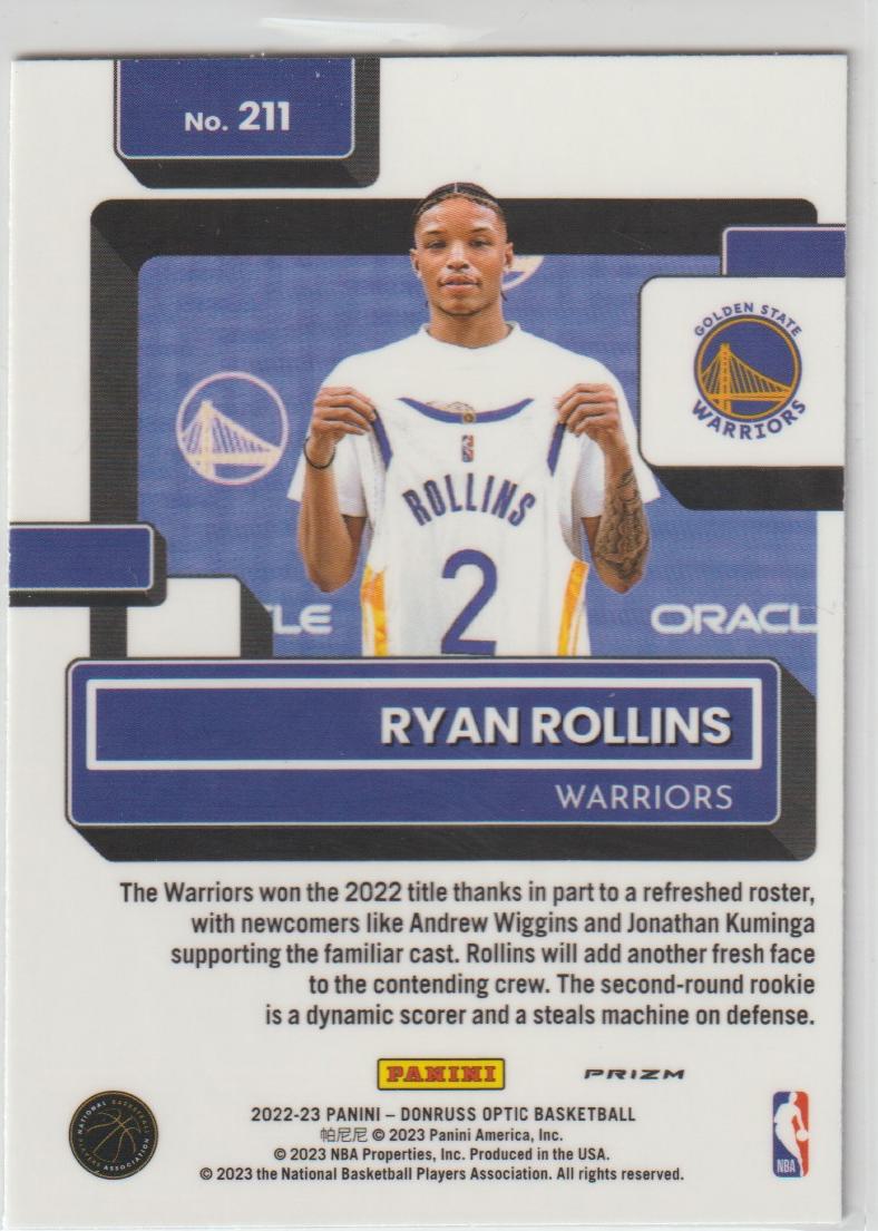 211 Ryan Rollins - Golden State Warriors Purple 2022/23 Donruss Optic Basketball