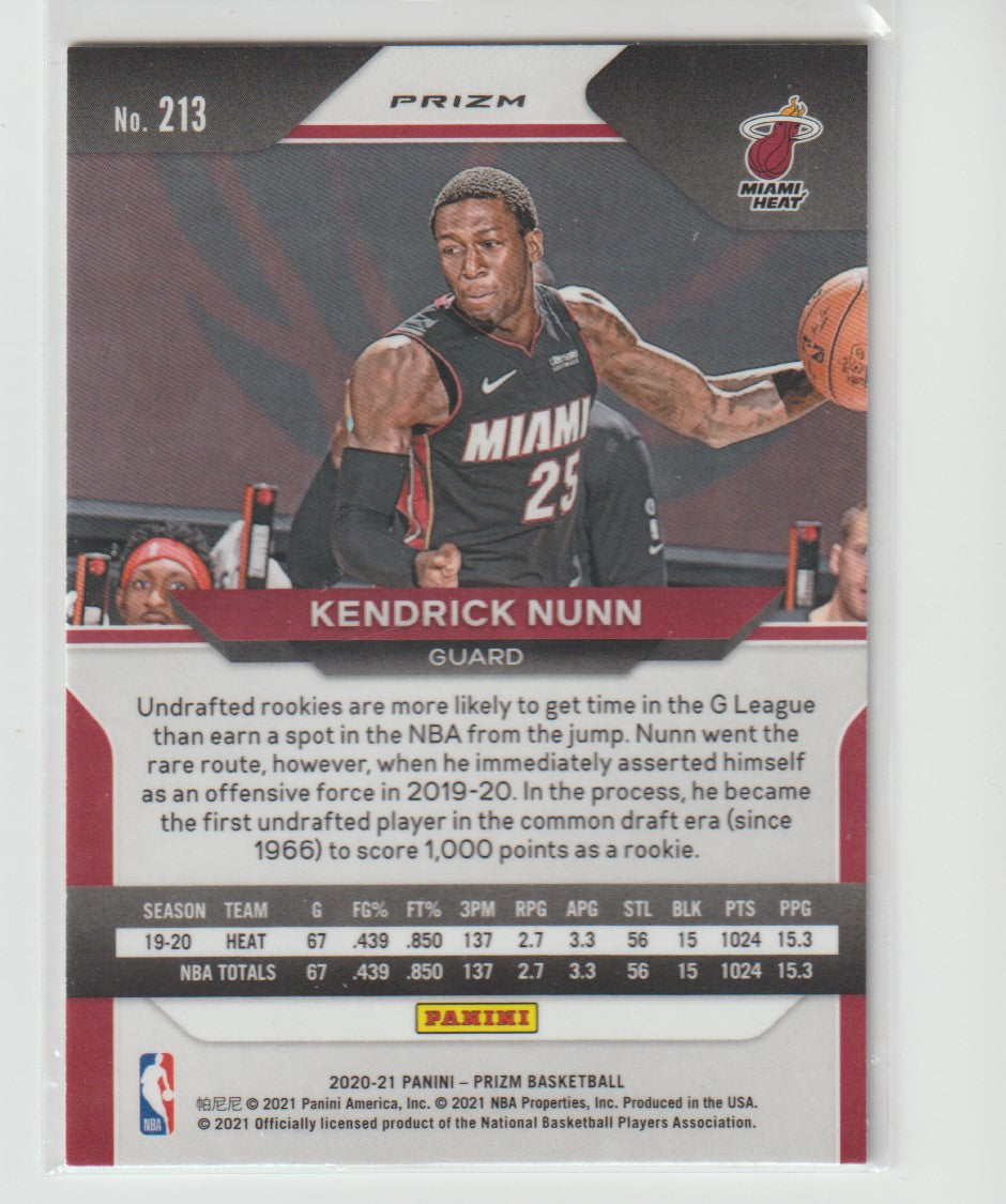 213 Kendrick Nunn - Miami Heat Silver Prizm 2020/21 Prizm Basketball