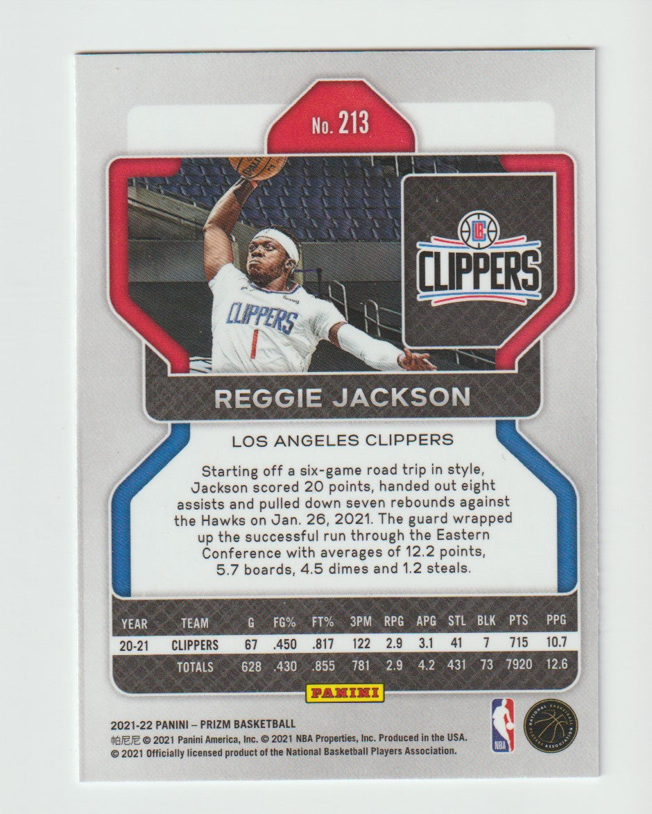 213 Reggie Jackson - Los Angeles Clippers 2021/22 Prizm Basketball