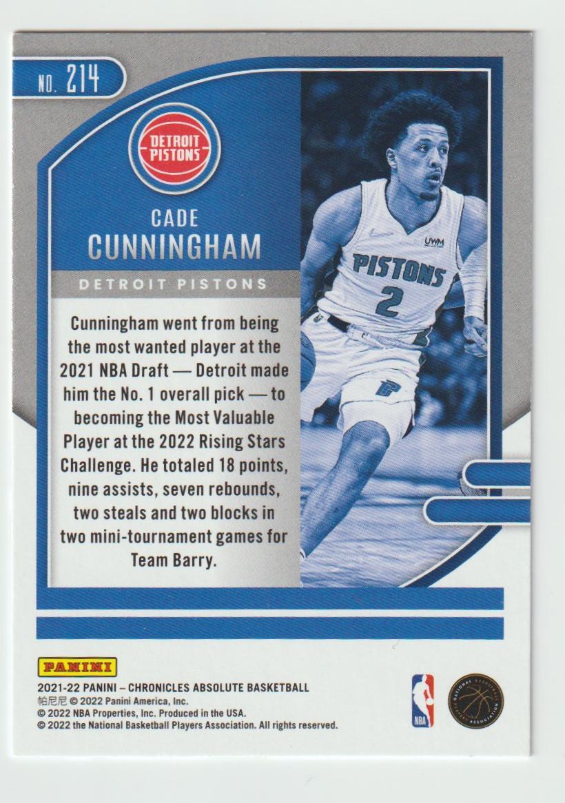 214 Cade Cunningham - Detroit Pistons Green 2021/22 Chronicles Basketball