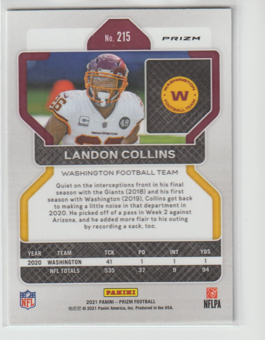 215 Landon Collins - Washington Football Team Green 2021 Prizm Football