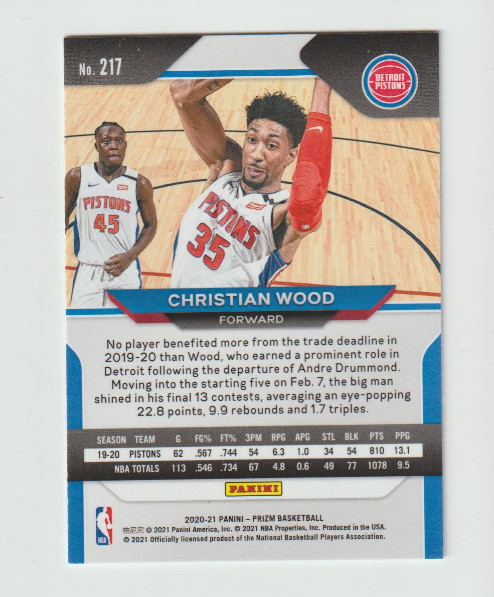 217 Christian Wood - Detroit Pistons 2020/21 Prizm Basketball