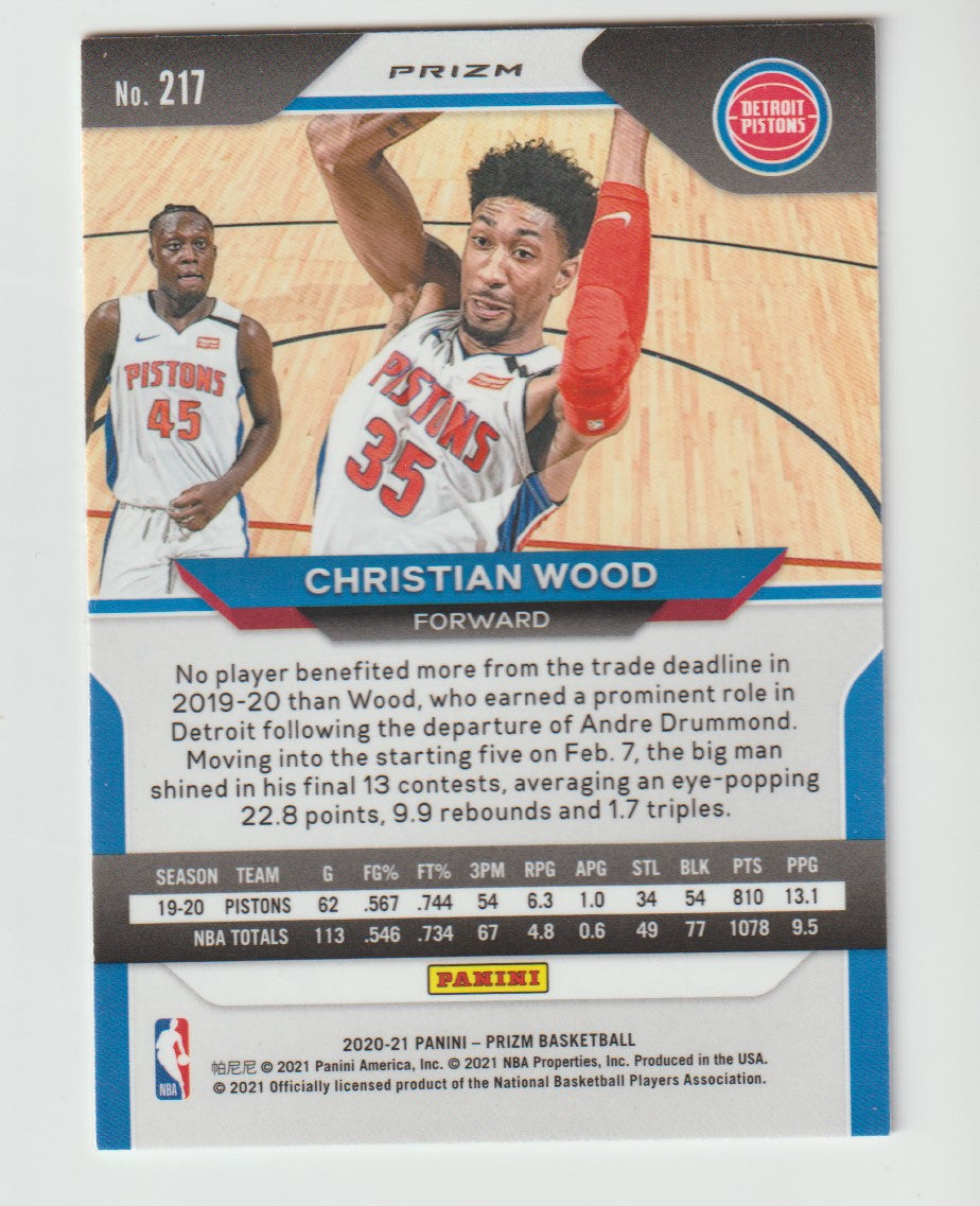 217 Christian Wood - Detroit Pistons Red Ice Prizm 2020/21 Prizm Basketball