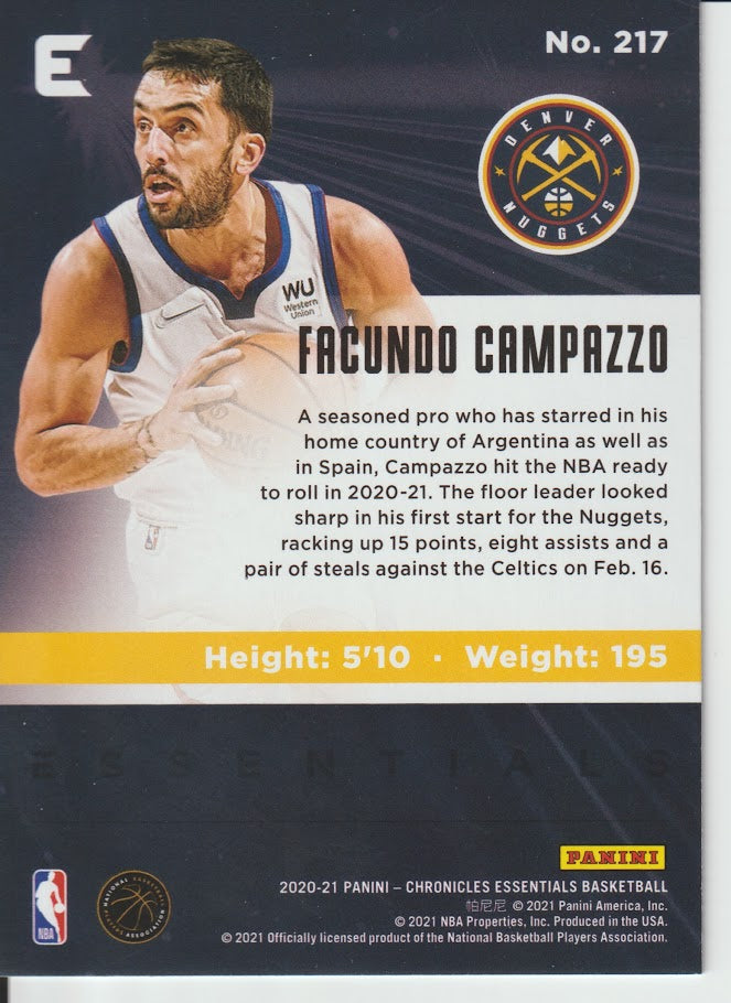 217 Facundo Campazzo - Denver Nuggets 20/21 Chronicles Basketball