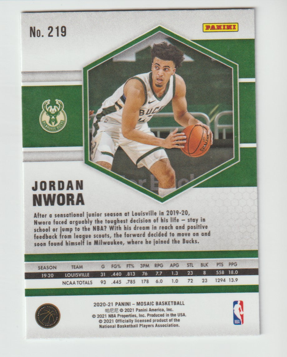 219 Jordan Nwora - Milwaukee Bucks 2020/21 Mosaic Basketball