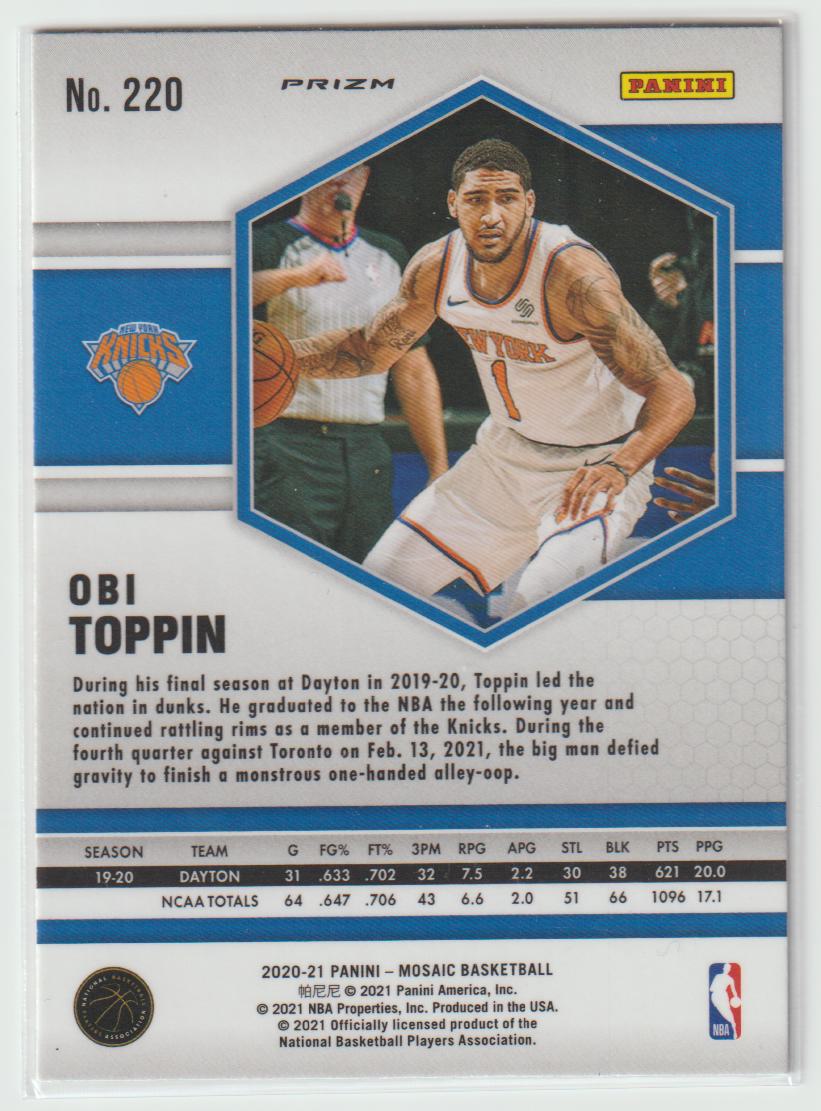 220 Obi Toppin - New York Knicks Camo Pink 2020/21 Mosaic Basketball