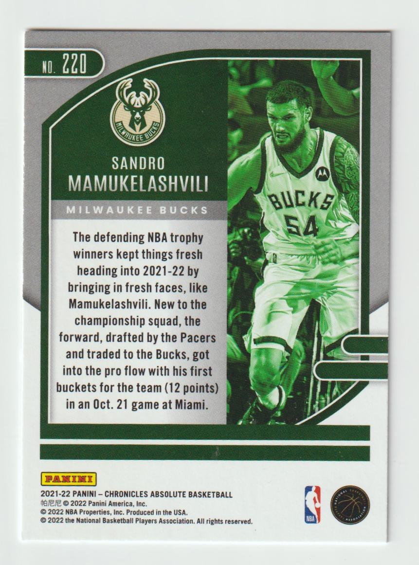 220 Sandro Mamukelashvili - Milwaukee Bucks 2021/22 Chronicles Basketball