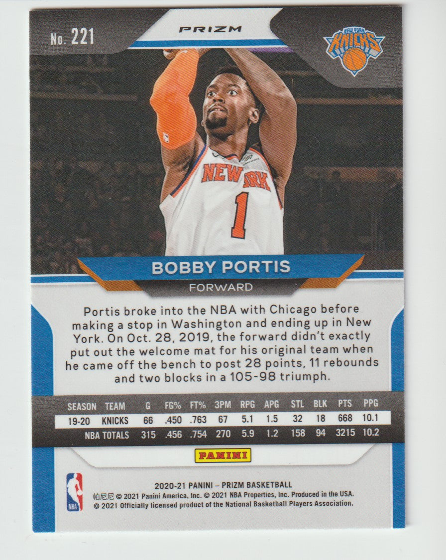 221 Bobby Portis - New York Knicks Silver Prizm 2020/21 Prizm Basketball