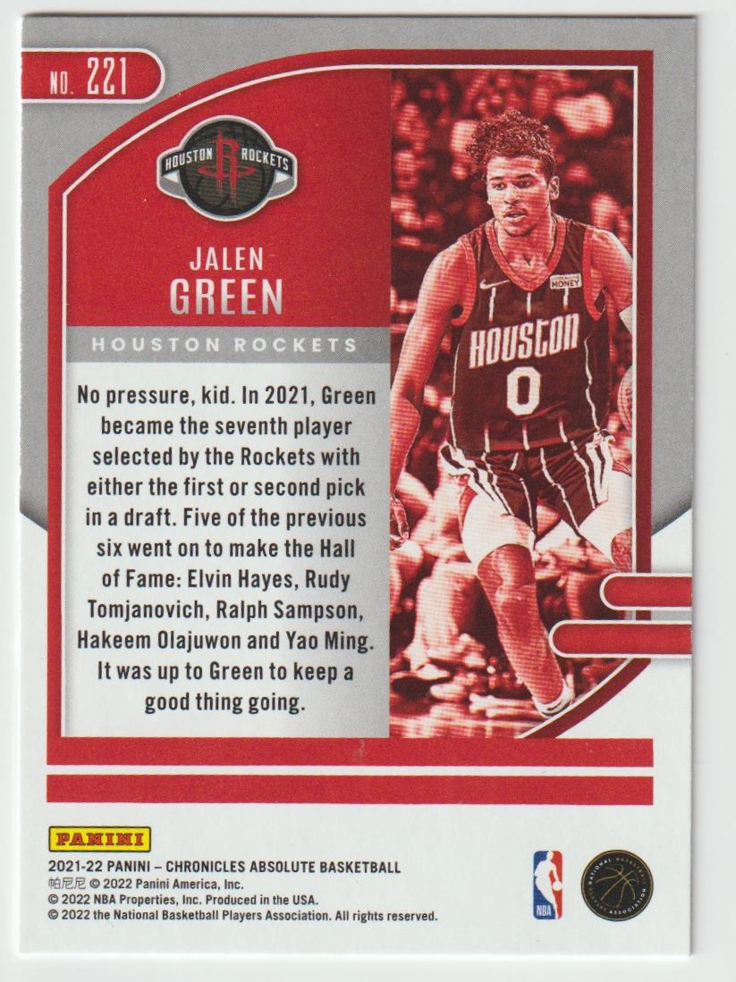 221 Jalen Green - Houston Rockets Green 2021/22 Chronicles Basketball