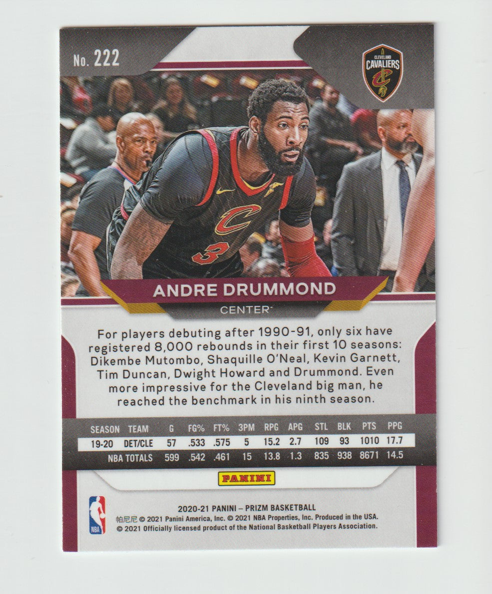 222 Andre Drummond - Cleveland Cavaliers 2020/21 Prizm Basketball