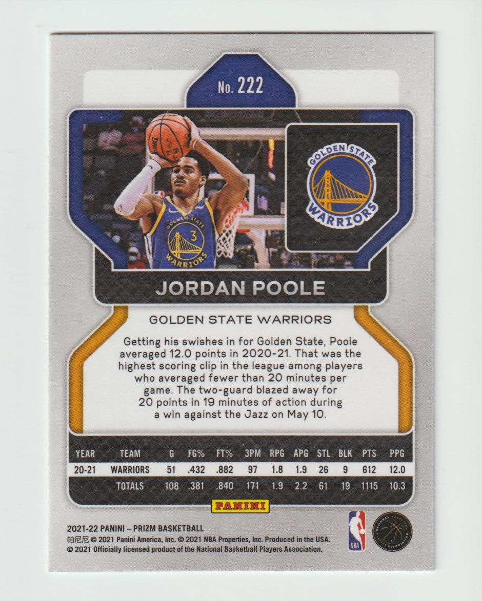 222 Jordan Poole - Golden State Warriors 2021/22 Prizm Basketball