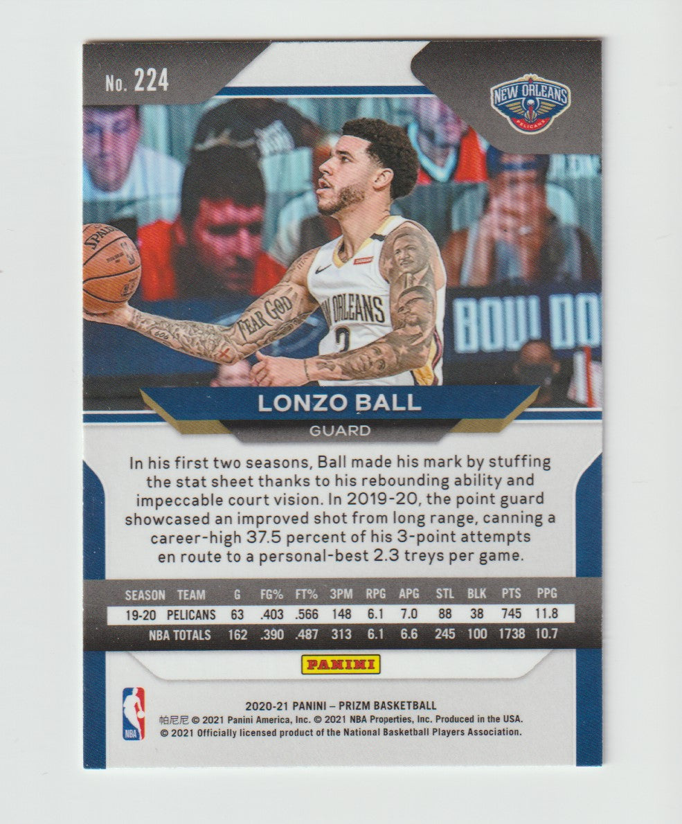 224 Lonzo Ball - New Orleans Pelicans 2020/21 Prizm Basketball