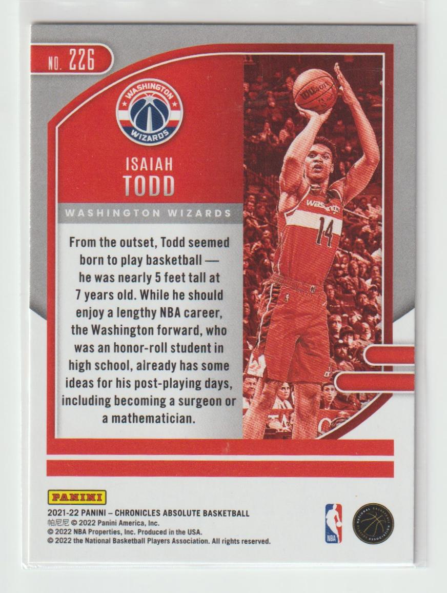 226 Isaiah Todd - Washington Wizards 2021/22 Chronicles Basketball